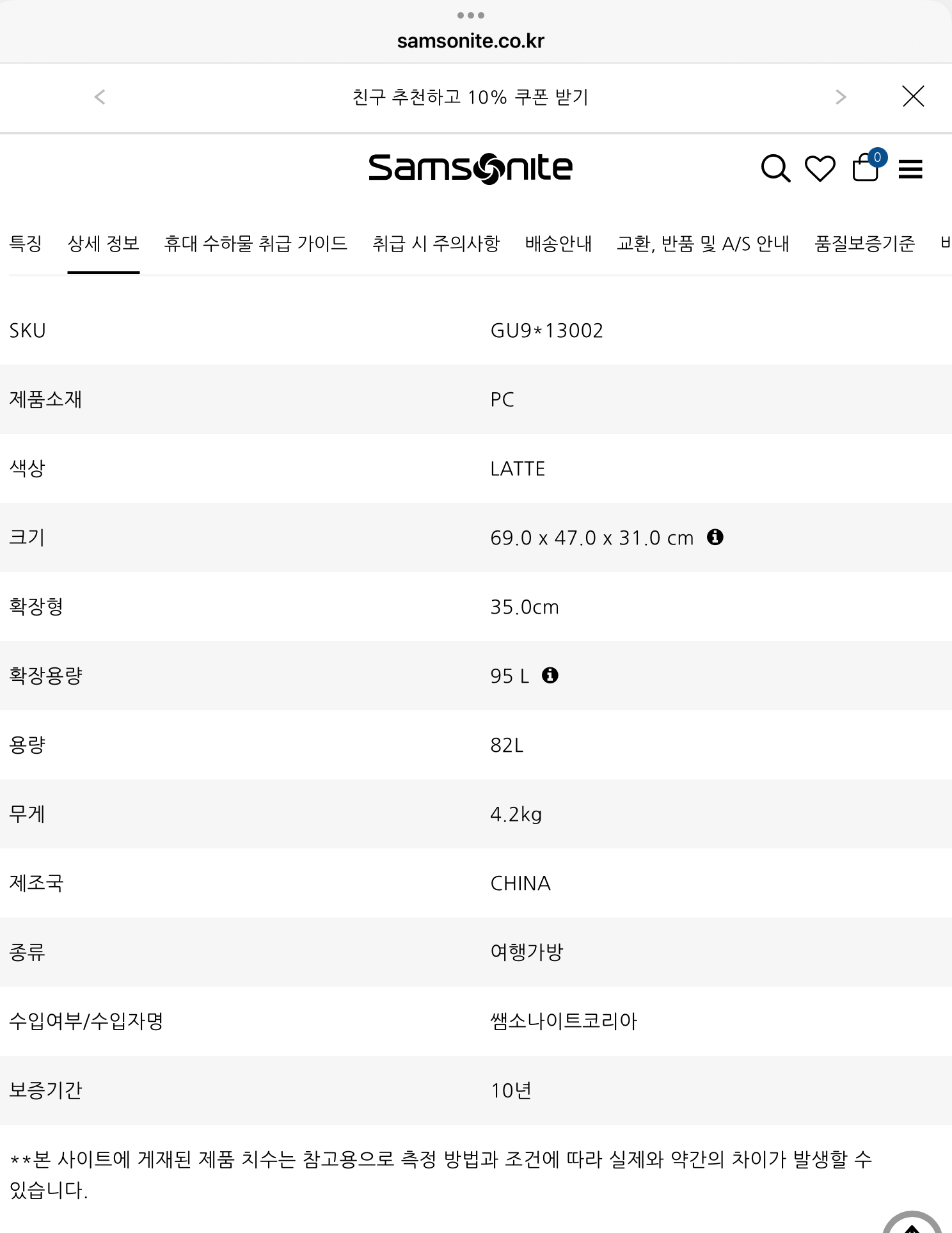 그리고 캐리어 파손되었을때 여행자 보험으로 어느정도 보상받았기 때문에 이번에도 삼소나이트로 가자! 하며 삼소나이트 브랜드를 찾아보았다.