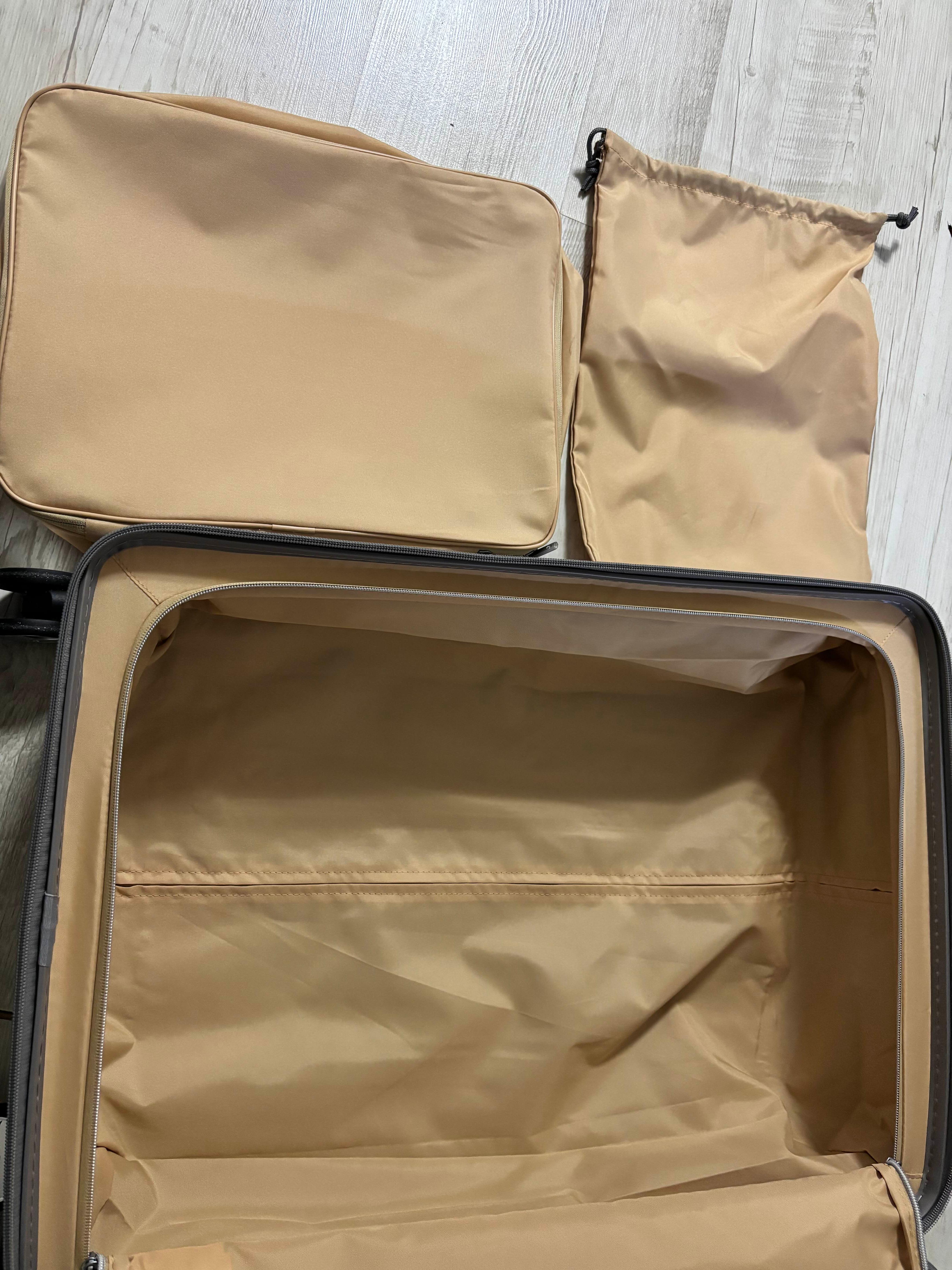5.나는 어차피 캐리어 커버를 쓴느 편이므로 이번에는 조금 라이트한 브라운? 갈색? 을 골랐다. 그런데 이 캐리어의 경우 후기 사진 마다 달라서 어떤게 진짜 색인가 궁금했는데, 빛의 각도에 따라 톤다운된 골드로 보이기도, 베이지로보이기도, 살짝 그레이로 보이기도 하는 아주 묘한 색이다. 아래 개봉 사진에서 확인 할 수 있다. 나는 나름 이뻐서 매우 만족중이다!